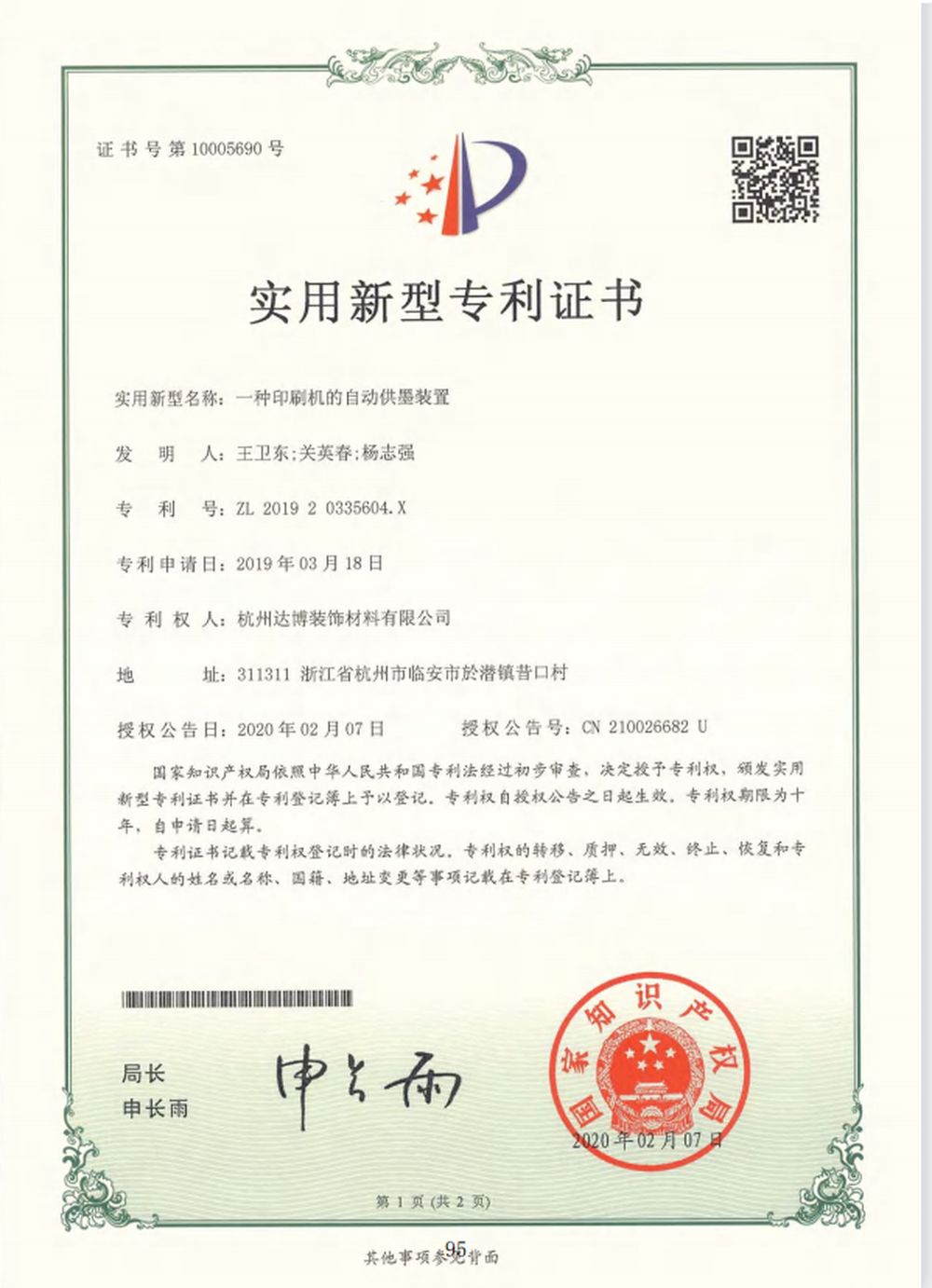 专利证书